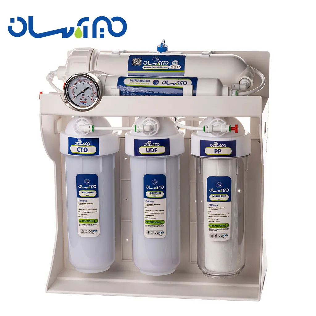 طراحی صنعتی، بدنه مقاوم، راندمان بالا و استفاده از قطعات باکیفیت باعث شده مدل Mini 400 GPD یکی از محبوب‌ترین سیستم‌های نیمه‌صنعتی در میان مشتریان میراب سان پارس باشد.